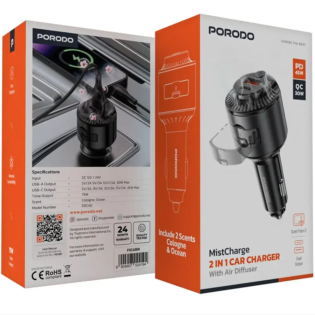 با شارژر فندکی فست شارژ و خوشبو کننده هوای پورودو Porodo مدل PDC40BK، تجربه رانندگی خود را به سطح بالاتری ببرید! این دستگاه نه تنها دستگاههای شما را با سرعت بالا شارژ میکند، بلکه با رایحهای دلپذیر محیط خودرو را تازه نگه میدارد. یک همراه ضروری برای هر سفر، که کارایی و لذت را همزمان ارائه میدهد!
